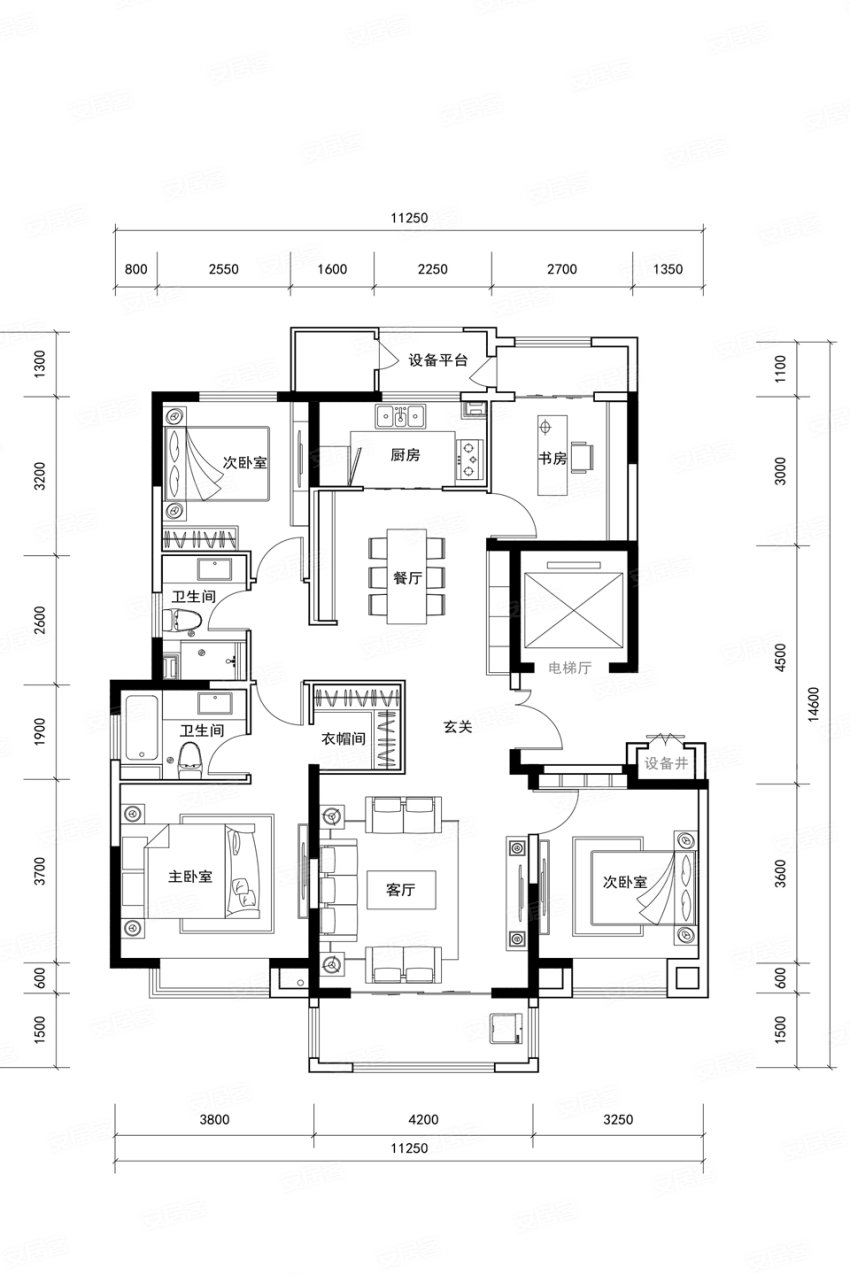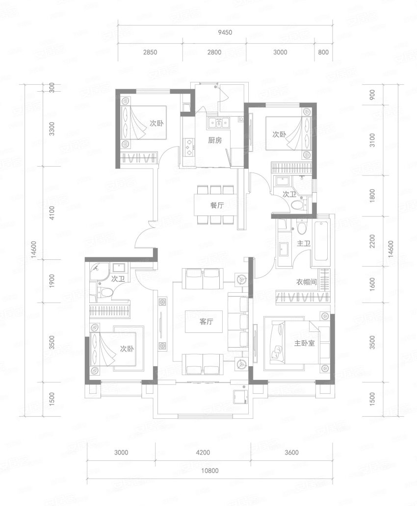 4室2廳3衛(wèi) 140平米