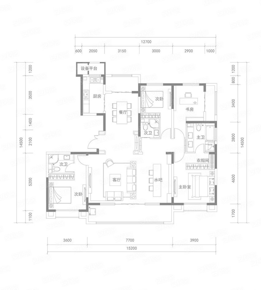 4室2廳3衛(wèi) 193平米