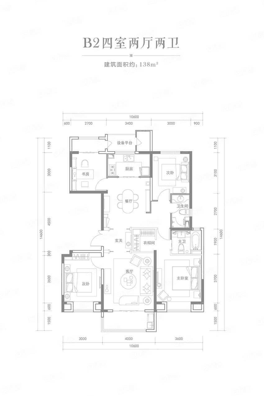 4室2廳2衛(wèi) 138平米