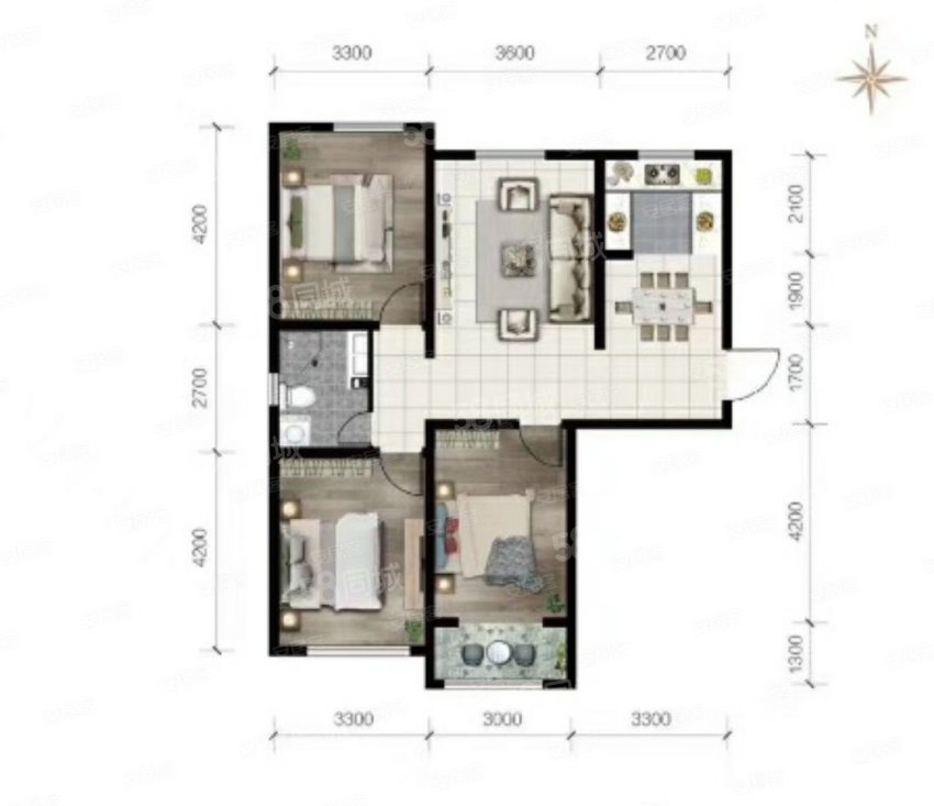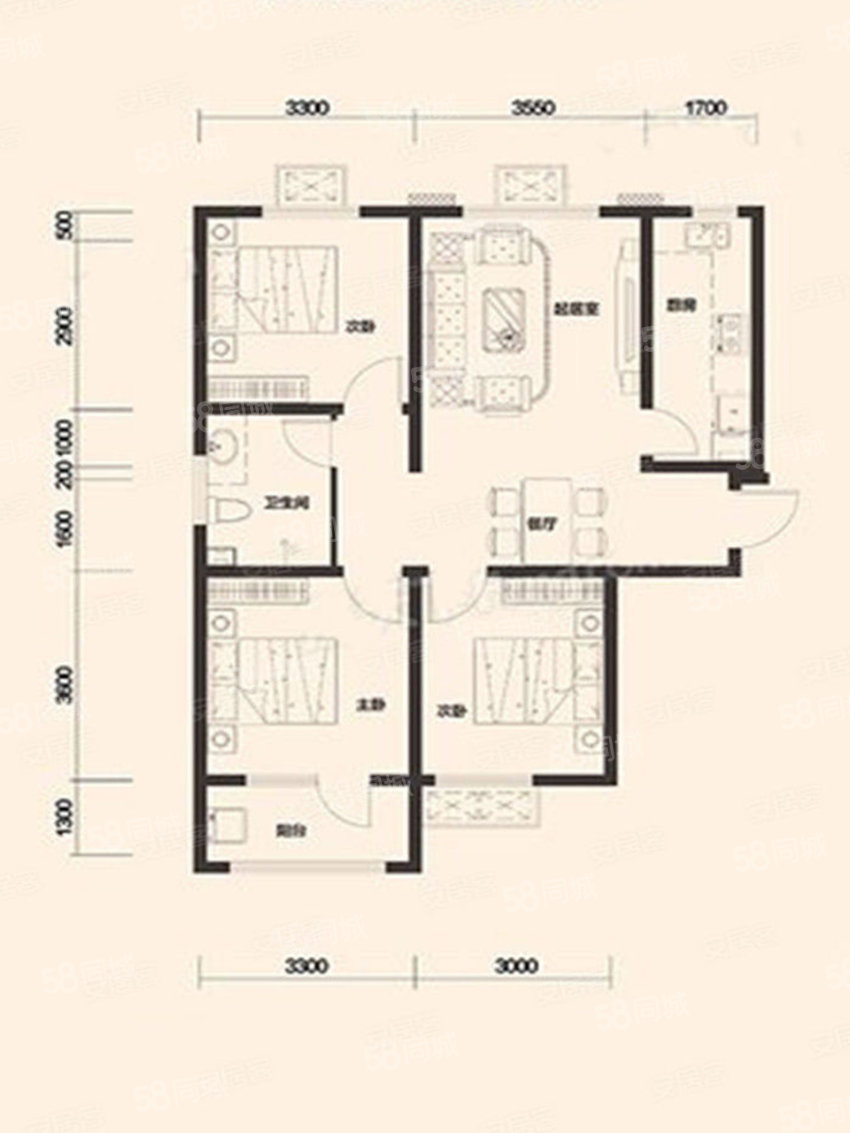 3室2廳1衛(wèi) 113平米